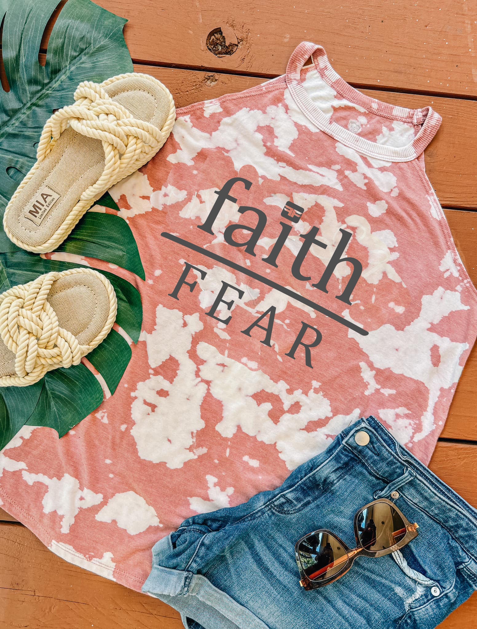 Our newest tie dye style in a high-neck triblend tank! Our "Faith Over Fear" tank is insanely soft feel to touch These are washed, dried and preshrunk ready to wear. The bleach style process is created individually by hand, so they will vary per item making each one super unique. Thank you for helping support mental health awareness.