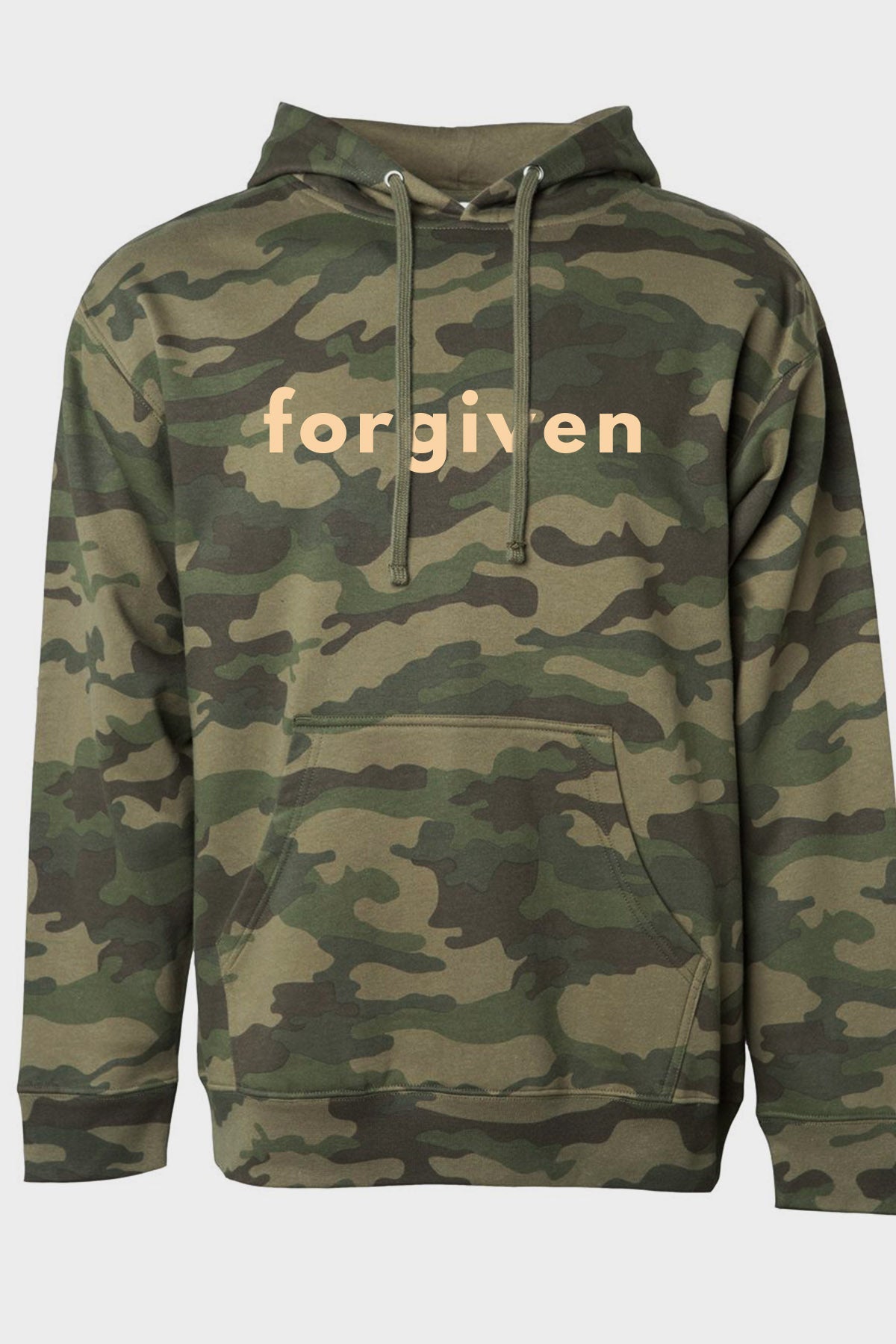 Introducing our best selling message now in Camo! The Forgiven hoodie, made with a soft and durable ring spun cotton. Our hoodie is designed to provide comfort while advocating for mental health awareness. Perfect for anyone wanting to spread the message and stay cozy.